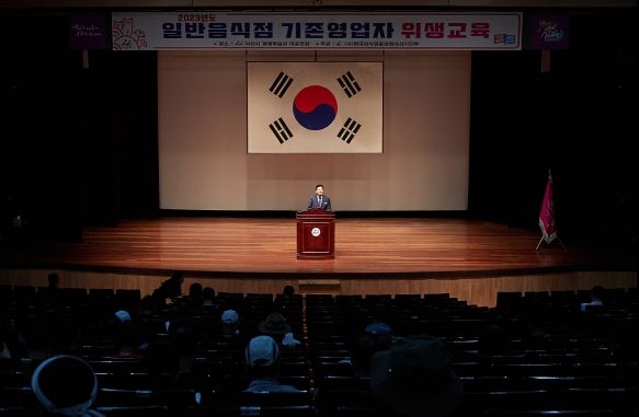 이번 교육은 (사)한국외식업중앙회 아산시지부 주관으로 아산시 평생학습관에서 진행됐으며 식품위생법 및 정책 방향과 식중독 예방 및 위생 관리, 식품접객업 서비스 개선 및 관련 법령 등 위생 분야 전반에 대한 교육이 포함됐으며, 일반음식점 세무관리 및 노무관리 교육도 함께 진행됐다.
