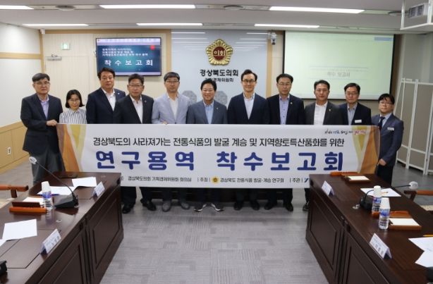 [제주교통복지신문 김강석 기자] 경북도의회 '경상북도 전통식품 발굴․계승 연구회'(대표 이춘우 의원)는 20일 도의회 회의실에서 “경북지역의 사라져가는 전통식품의 발굴 계승 및 지역향토특산품화를 위한 연구 용역” 착수보고회를 개최했다.
