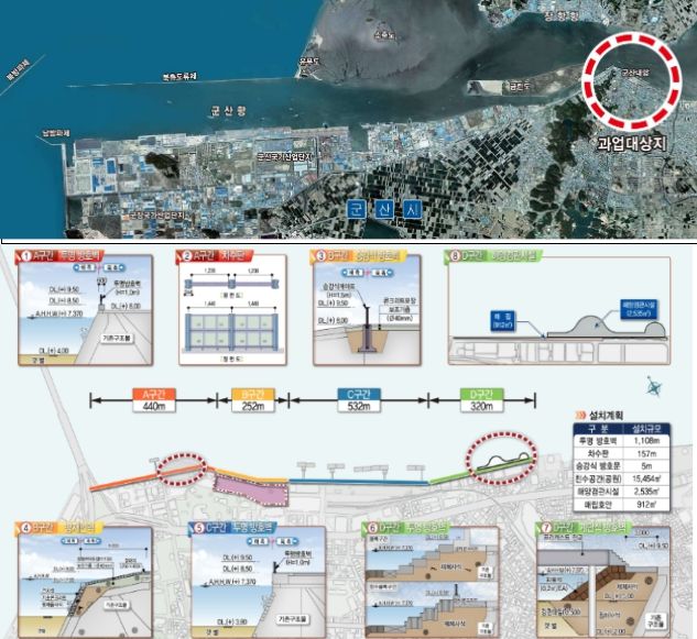 [제주교통복지신문 김강석 기자] 해양수산부는 기후변화에 대비하여 외곽 및 방재시설을 보강하는 ‘재해취약지구 정비계획(2011~2030)’을 추진 중이며, 이 계획에 따라 군산내항 재해 취약구간을 정비하기 위해 이번 공사를 진행한다. 이번 정비사업은 지난해 기본 및 실시설계를 마쳤으며, 올해 3월 공고를 통해 선정된 우탑건설(주) 등 3개사 컨소시엄이 시공을 맡는다.