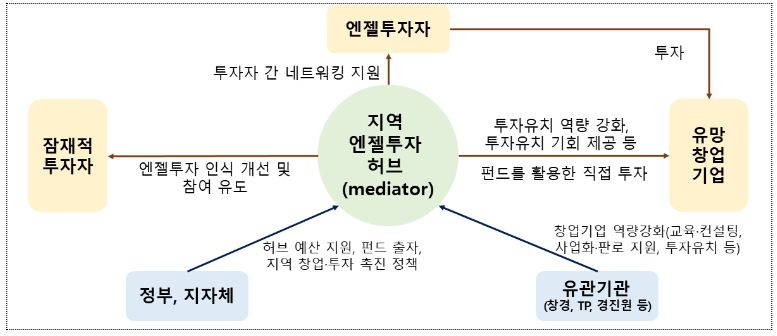 지역 엔젤투자허브는 민간과 공공이 가진 기반(인프라)‧역량 등을 활용해 엔젤투자의 수도권 편중을 해소하고, 지역 단위 초기투자 생태계를 조성하기 위한 지역 거점이다.