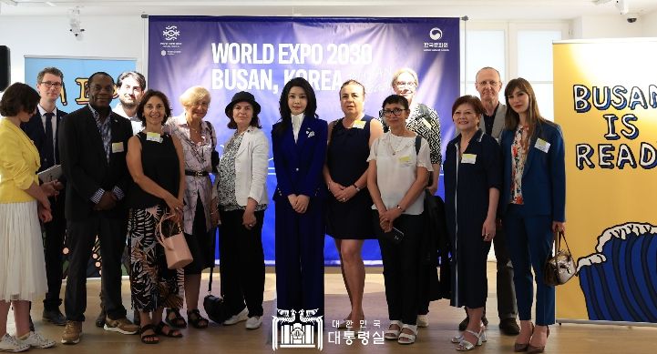 국제박람회기구(BIE) 총회 계기 윤석열 대통령과 함께 프랑스를 방문 중인 김 여사는 대한민국과 부산의 다양한 매력을 직접 소개하며 ‘2030 세계박람회’ 유치 후보 도시인 부산을 알리기 위해 외신기자들을 초청하는 자리를 마련했다. 프랑스한국문화원 곳곳에는 김 여사가 디자인 제작에 참여한 부산엑스포 키링 이미지를 구현한 영상과 홍보 배너가 설치되어 의미를 더했다.