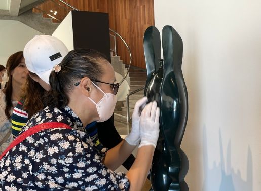 이번 프로그램은 문신 예술의 특징인 대칭과 볼륨 등을 활용한 공감각적 감상을 주제로, ▲조각가 문신 동상 촉각감상 ▲전시실 공간 느끼기 ▲회화작품 해설 및 촉각 감상 ▲조각작품 촉각 감상으로 구성됐다.