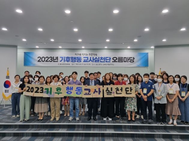 이와 관련 울산시교육청은 21일 외솔회의실에서 울산 지역 교사 65명을 대상으로 ‘2023년 기후행동 교사실천단 오름마당(발대식)’을 열었다.