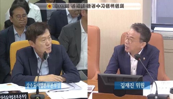 상수도사업본부는 2023년 여름철 상수도 종합대책을 추진하고 있으며, 그 일환으로 옥외 공사장 130개소 근로자에게 얼음 및 생수를 제공하고 있다. 김재진 의원은 본부장에게 “여기 제공하는 생수는 아리수겠죠?”라고 질문했으나, 대답은 일반생수였다. 본부장은 공사업체에서 생수를 지급하고 있다라고 답했으며, 김재진 의원은 아리수 음용률을 높여야 한다는 상수도사업본부에서 정작 일반생수를 제공하고 있는 것을 지적했다.