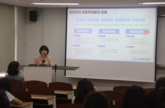 [제주교통복지신문 김강석 기자] 더불어민주당 홍정민 의원(경기 고양병)이 13일 중앙대학교 사회복지대학원(아동복지학과 '아동복지실천론'전문가 특강)에서 아동보호정책을 주제로 강연했다. 이번 강의는 홍정민 의원이 21대 전반기 국회 여성가족위원회 위원으로서 아동보호 의정활동을 활발히 이어온 것과 관련해 해당 담당과목 교수인 김안나 강사로부터 요청받은 것이다.