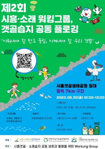 [제주교통복지신문 김강석 기자] 시흥시지속가능발전협의회가 오는 30일 ‘제2회 시흥·소래 워킹그룹, 갯골습지 공동 플로깅’ 캠페인에 함께할 시민을 모집한다.