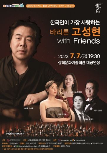 [제주교통복지신문 김강석 기자] 삼척시가 강원특별자치도 출범과 민선 8기 1주년을 축하하는 특별공연으로, “바리톤 고성현 with Friends” 초청공연을 7월 7일(금) 오후 7시 30분 삼척문화예술회관 대공연장에서 개최한다.