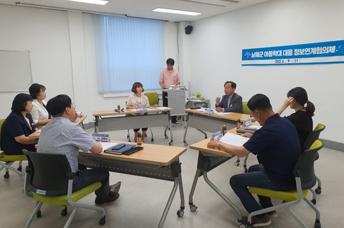 남해군 아동학대 대응 정보연계협의체는 남해군과 남해경찰서, 남해교육지원청, 경남서부아동보호전문기관, 청소년상담센터가 필수적으로 참여하고 사례에 따라 읍·면사무소 등이 확대 참여하게 된다. 피해(의심)아동에 대한 보호 및 지원을 위해 기관별로 의견을 논의하고 협력방안 등을 적극 모색하고 있다.