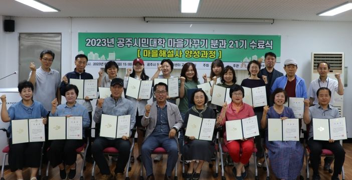 [제주교통복지신문 김강석 기자] 공주시는 최근 도시재생지원센터에서 ‘공주시민대학 제21기 마을가꾸기분과 마을해설사 양성과정’ 수료식을 가졌다고 22일 밝혔다.