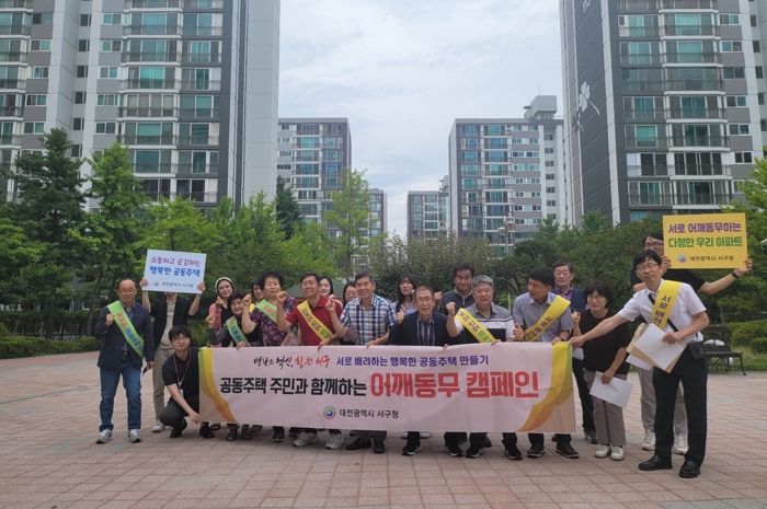 [제주교통복지신문 김강석 기자] 대전 서구는 둔산 크로바아파트에서 입주자대표회의 구성원, 관리사무소 직원, 입주민 등과 함께하는 ‘어깨동무 캠페인’을 진행했다.