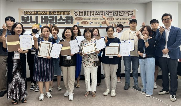 [제주교통복지신문 김강석 기자] 안산시는 지난 19일 본오2동 도시재생 뉴딜사업의 일환으로 운영한 도시재생대학 바리스타 양성과정 수료식을 진행했다고 22일 밝혔다.