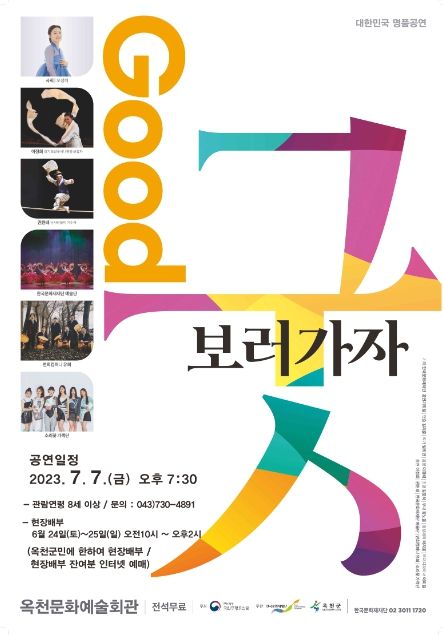[제주교통복지신문 김강석 기자] 충북 옥천문화예술회관에서는 7월 7일 오후 7시 30분에 ‘굿GOOD보러가자’공연이 개최된다.