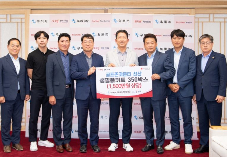 [제주교통복지신문 김강석 기자] 구미시는 21일 국제통상협력실에서 골프존카운티 선산 관계자들이 참석해 취약계층 지원을 위한 1,500만원 상당의 생필품세트를 전달하는 기탁식을 열었다.