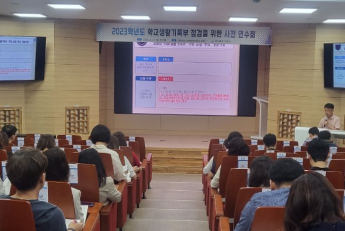 이번 연수는 2023학년도 학교생활기록부 기재 요령 개정 사항 및 주요 점검 사항과 컨설팅 방안에 대한 이해도를 높이기 위해 마련됐으며, 학적 처리에 사용하는 용어, 인적·학적사항, 출결 상황, 창의적 체험활동 상황, 교과학습발달 상황, 행동 특성 및 종합 의견, 자료의 보존 등의 내용을 전달했다.