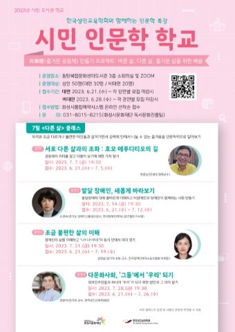 [제주교통복지신문 김강석 기자] (재)화성시문화재단(대표이사 김신아)은 7월 7일부터 시민 인문학 학교 ‘다른 삶’ 클래스를 개강한다고 밝혔다.