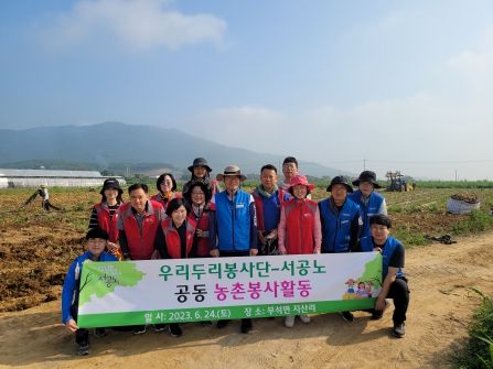 6월 24일 휴일에도 불구하고 서공노와 우리두리봉사단 회원 30여명은, 부석면 지산리 감자 농가를 방문 농촌지역 부족한 일손을 보태기 위해 구슬땀을 흘렸다.