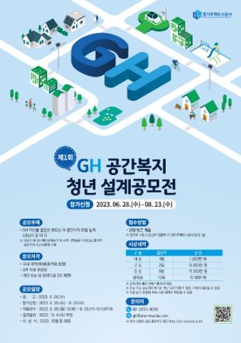 [제주교통복지신문 김강석 기자] 경기주택도시공사(GH)가 청년들과 GH의 공간복지 비전을 공유하고, 우수한 청년 건축가를 발굴하여 미래를 선도하는 건축가로 성장하는 기회를 제공하고자 ‘제1회 GH 공간복지 청년 설계공모전’을 28일 개최한다.
