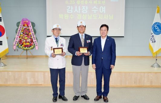 특히 투철한 사명감과 헌신적인 봉사정신으로 지역사회에서 모범이 된 공로를 인정받은 하종태, 오창모 6‧25참전유공자회 경남도지부 고문을 비롯한 5명에게는 감사장 또는 위문금이 전달됐다.