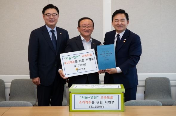 이날 김덕현 연천군수는 군민 3만 1천여 명이 참여한 ‘서울-연천 고속도로 조기 착수를 위한 서명부’를 원희룡 장관에게 전달했다. 앞서 연천군은 지난 4월부터 서울-연천 고속도로 조기 착수를 위한 대군민 서명운동을 전방위적으로 전개했다.