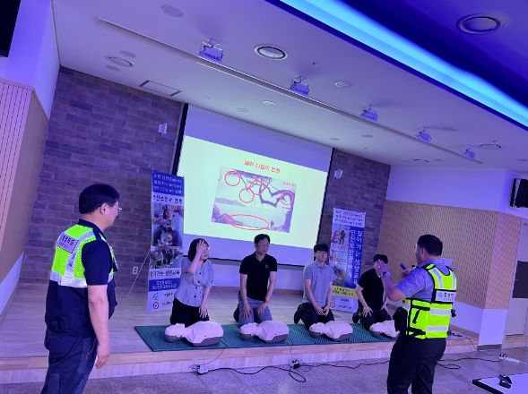 이날 교육은 도 안전보안관 한효동 대표 외 2명이 참여하여 응급상황 발생 시 응급처치 능력을 향상시키기 위해 △심폐소생술(마네킹 활용) △자동심장충격기(AED) 사용법 △하임리히 응급처치법 △화상 시 응급처치법 등 실습 위주의 교육을 실시했다.