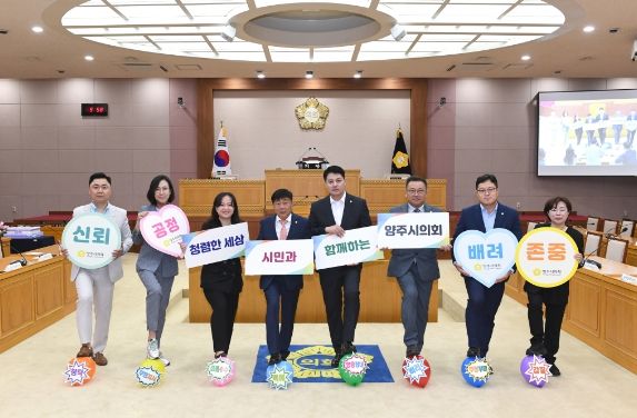 [제주교통복지신문 김강석 기자] 양주시의회는 30일, 9대 의회 개원 1주년 기념식과 함께 반부패·청렴시책 적극 추진을 위한 퍼포먼스 갖고, 시민 행복과 청렴 실천에 힘을 모으기로 다짐했다.