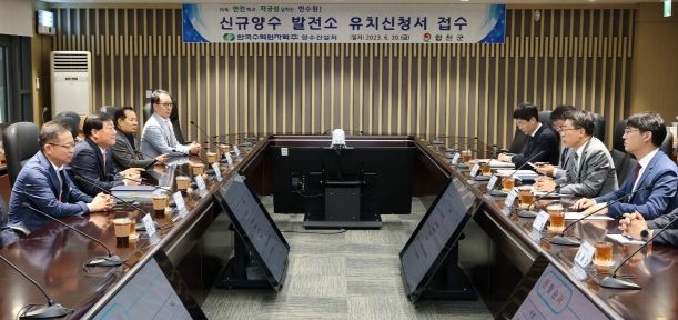 [제주교통복지신문 김강석 기자] 합천군은 30일 합천 두무산 양수발전소 유치추진단 공동위원장 김윤철 합천군수, 조삼술 합천군의회 의장이 함께 한국수력원자력(주) 경주 본사를 방문해 양수발전소 유치신청서를 제출했다고 밝혔다.