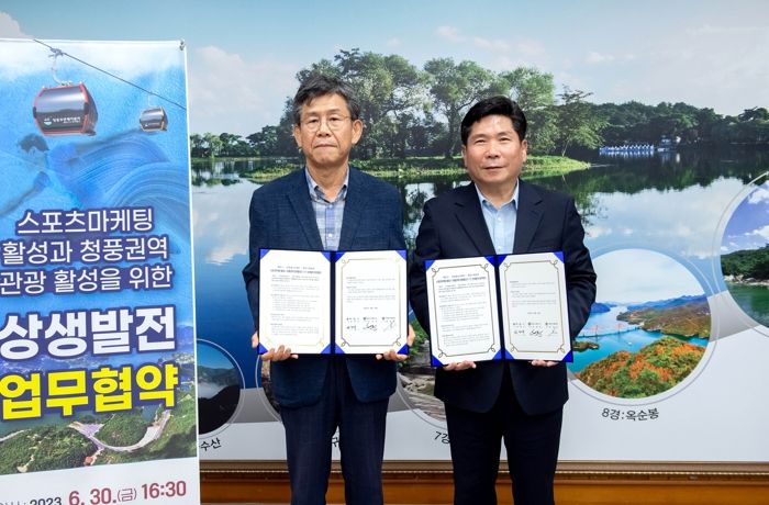 [제주교통복지신문 김강석 기자] 제천시와 ㈜청풍 로프웨이는 스포츠마케팅 활성과 청풍 권역 관광 활성을 위해 힘을 합한다.