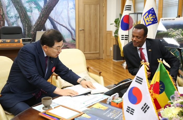특히, 데씨 달케 두카모 주한에티오피아 대사가 2015년 남부국민민족인민주(SNNPRS) 주지사 시절 영남대에서 새마을운동 연수를 받은 후 에티오피아 새마을운동 전파에 노력을 기울인 것과 관련해 아프리카 국가들을 대상으로 직접 연구한 새마을운동 박사 논문집을 대사에게 증정했다.