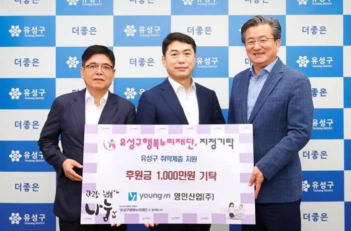 한편, 영인산업(주)는 2003년에 설립된 건설기업으로 2015년부터 대전 관내 취약계층 지원을 위해 기부와 봉사활동을 이어왔으며, 작년에는 유성구에 희망나눔 프로젝트 후원금 1,000만원을 기탁한 바 있다.