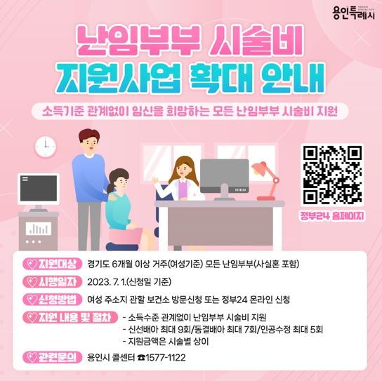 [제주교통복지신문 김강석 기자] 용인특례시가 이달부터 소득에 상관없이 모든 난임 부부에게 ‘난임 시술비를’ 지원한다.