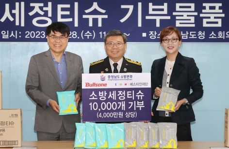 도 소방본부는 지난달 28일 도청 소회의실에서 김연상 본부장과 설수진 베스티안재단 대표, 이금영 불스원 부사장 등 20여 명이 참석한 가운데 소방세정티슈 전달식을 가진 바 있다.