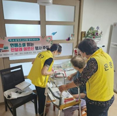 ’연애소설 읽는 진달래 어르신‘ 사업은 진관동 자원봉사캠프에서 거동이 불편한 은둔형 독거 어르신들 댁에 직접 찾아가 책을 읽어드리고 더불어 심신의 건강까지 도와주는 사업이다. 지난 5월 은평구 자원봉사캠프 공모사업 우수 프로그램에 선정됐다.