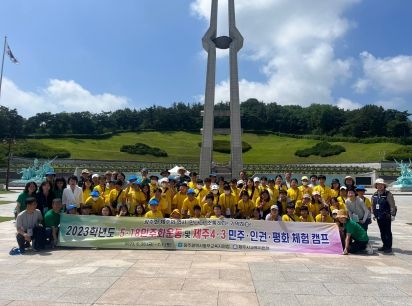 [제주교통복지신문 김강석 기자] 광주동부교육지원청이 제주시교육지원청과 함께 지난 6월30일~7월1일 광주와 제주 초등학생 60명 대상으로 광주광역시 일대에서 ‘2023년 5·18민주화운동 및 제주 4·3민주·인권·평화체험캠프’를 진행했다.