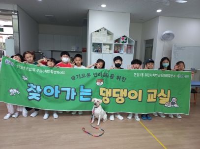 이날 ‘찾아가는 댕댕이 교실’에 참여한 어린이들은 반려견에게 다가가 어떻게 인사해야 하는지를 배운 후 리드 줄을 잡고 반려견 산책시키기 체험을 했다. 또한 반려견이 명령에 따를 경우 칭찬을 하고 간식 주며 즐거운 시간을 보냈다.