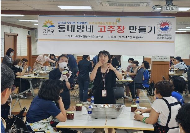[제주교통복지신문 김강석 기자] 금천구는 6월 29일 독산보건분소 2층 교육실에서 ‘농아인과 수어로 소통하는 동네방네 고추장 만들기’를 진행했다.