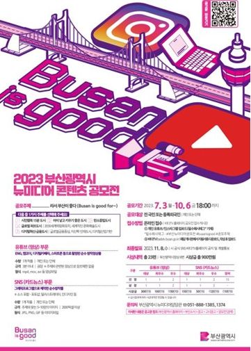 [제주교통복지신문 김강석 기자] 부산시는 오늘(3일)부터 10월 6일까지 '부산광역시 뉴미디어 콘텐츠 공모전'을 개최한다고 밝혔다.
