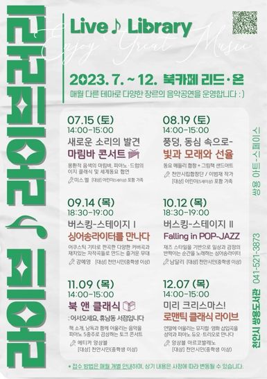 도서관 관계자는 “일상 속 예술과의 편안한 만남을 위한 행사를 준비했다”며, “독서는 물론 음악공연과 작가 북토크, 갤러리 전시까지 동네 도서관의 문화 서비스를 즐겨주시길 바란다”고 전했다.