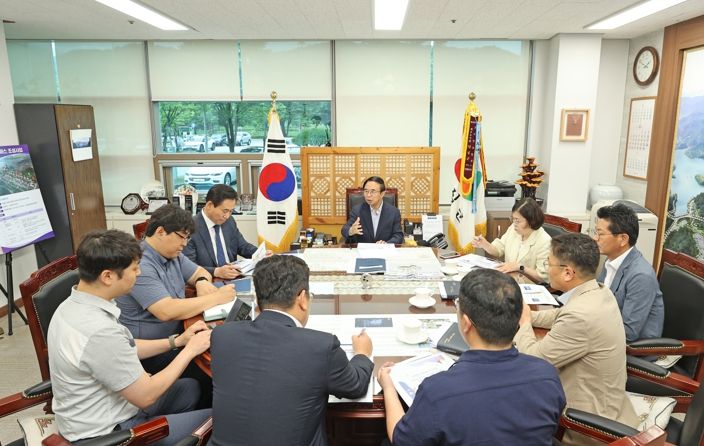 이날 착수보고회에는 심 민 군수와 김학모 한국자치경제연구원장 등을 비롯해 전문가 10여 명이 참석해 사업의 추진 방향에 대하여 심도 있는 논의를 진행했다.