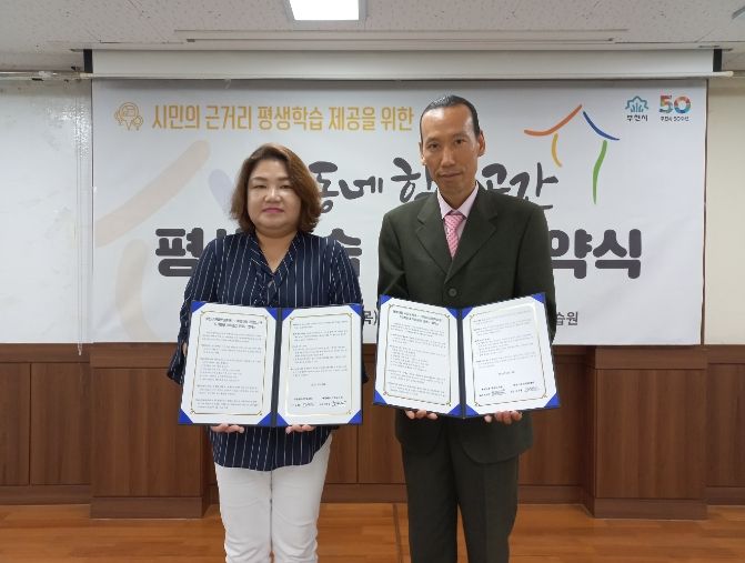 [제주교통복지신문 김강석 기자] 부천시는 시민의 근거리 평생학습 제공을 위해 지난 6월 29일 부천시민학습원 누리터에서 ‘헤일라움 작은도서관’ 등 15개소와 ‘우리동네 학습공간’ 업무협약을 체결했다.