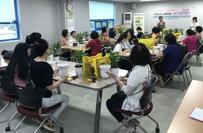 [제주교통복지신문 김강석 기자] 의정부시 신곡1동행정복지센터는 6월 29일 의정부시장애인가족지원센터에서 발달장애인 가족 20여 명을 대상으로 사계절 힐링 ‘나만의 화분만들기’를 진행했다.