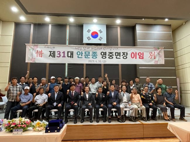 영중면 기관단체장협의회를 비롯하여 이장협의회, 주민자치회 등 단체에서는 2년 동안 면정을 이끌어간 안문종 면장에 대한 감사의 마음을 담은 감사패와 꽃다발을 전달했다.