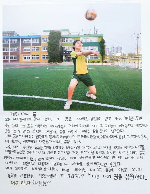 원주 태장초등학교 6학년 전현지 학생의 '나의 꿈'은 다양한 진로 중에서 엄마와 아빠가 바라는 꿈이 아닌 본인이 희망하는 배구선수가 되어 김연경 같은 멋진 선수가 되고 싶다는 소망을 적어 학생이 바라는 꿈을 꼭 이루었으면 하는 바람에서 심사위원 모두 대상으로 선정했다.