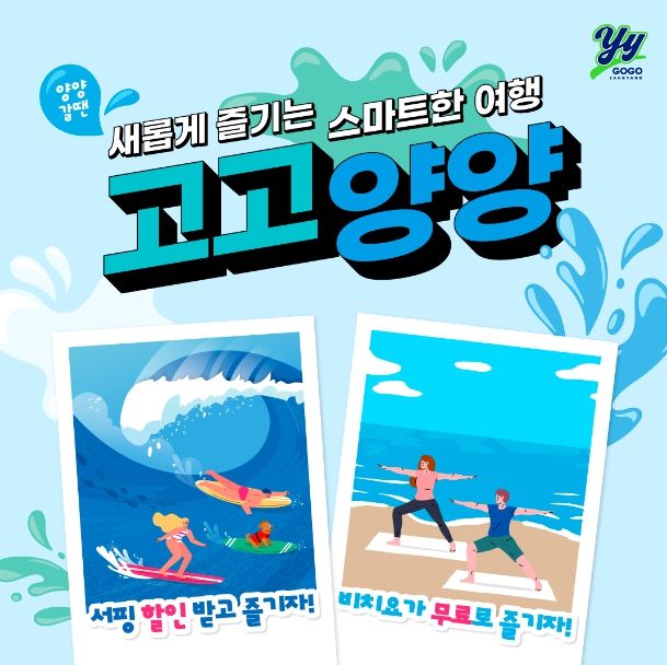 고고양양 앱은 구글 플레이스토어와 애플 앱스토어를 통해 다운로드할 수 있으며, 회원가입 시 전체 가맹점에서 사용할 수 있는 5천원 할인쿠폰, 비치 요가 무료이용권, 서핑강습 1만원 할인권 지급 등 프로모션이 진행 중에 있다.
