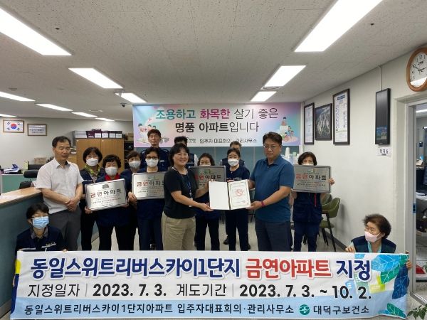 [제주교통복지신문 김강석 기자] 대전 대덕구는 신탄진동에 위치한 동일스위트리버스카이 1단지를 대덕구 제2호 금연아파트로 지정했다.