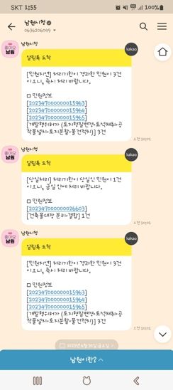 이에 앞서 남원시는 지난 6월부터 민원인을 대상으로 한 ‘민원처리 알림톡’을 발송하고 있다. 처리기한이 2일 이상인 모든 유기한 법정 민원에 대해 ▲민원 접수 ▲담당자 지정 ▲보완,보정 요청 ▲보완,보정 완료 ▲처리기간 연장 ▲처리 완료까지 민원 처리의 모든 단계를 민원인의 휴대전화로 안내한다. 최대 2개의 전화번호로 수신받을 수 있어 원하는 경우 민원인과 용역업체의 직원도 알림톡 수신이 가능하다. 민원인이 수신하는 민원처리 알림톡에는 민원의 처리 상황과 민원 처리 담당자 연락처 외에도 민원 내용 상세보기를 통한 자세한 안내를 확인하고 민원처리 완료 후 민원처리에 관한 만족도 조사 참여가 가능하다.