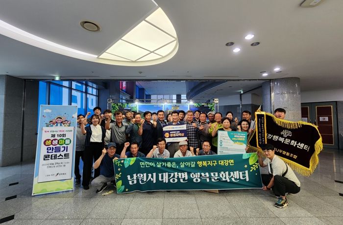 [제주교통복지신문 김강석 기자] 남원시 대강면 농촌중심지 활성화사업이 전라북도에서 주최한 제10회 생생마을만들기 콘테스트에서 농촌만들기분야 경연에서 최우수상을 수상하는 쾌거를 거뒀다.