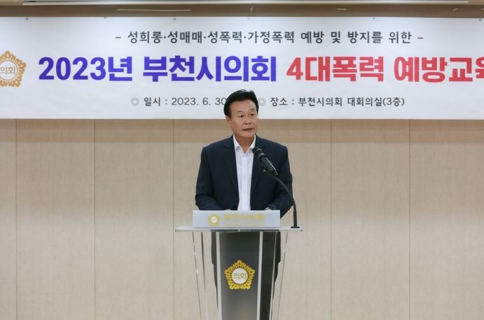 한편, 부천시의회는 「양성평등기본법」 등 4개 법령에 따라 4대 폭력 예방 교육을 연 1회 진행하고 있다.