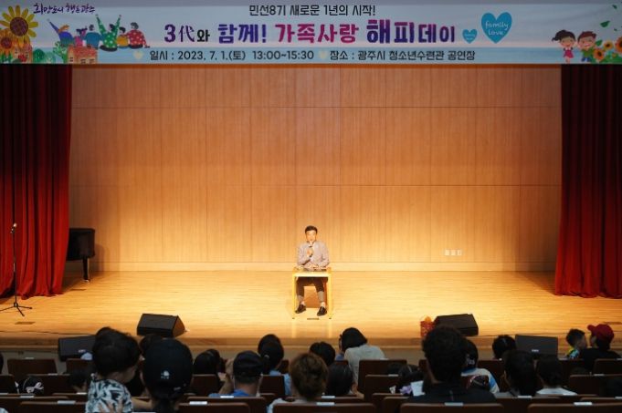 [제주교통복지신문 김강석 기자] 광주시는 민선8기 새로운 1년의 시작일인 1일 광주시 청소년수련관 공연장에서 소중한 가족의 의미를 되새기고 가족간 유대감과 결속력 강화를 위해 3대로 이루어진 가족들 130여명과 함께 '3대가 함께! 가족사랑 해피데이'를 개최했다.