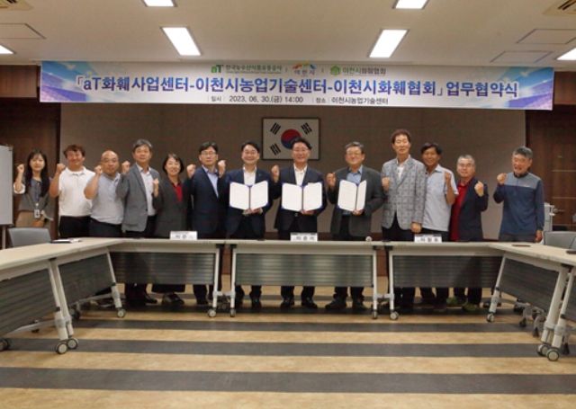 업무협약식은 이천시농업기술센터에서 진행됐으며, 이천시농업기술센터 이춘석 소장, 이천시화훼협회 이철호 회장, aT화훼사업센터 이은석 센터장을 비롯한 관계자들이 참석했다.