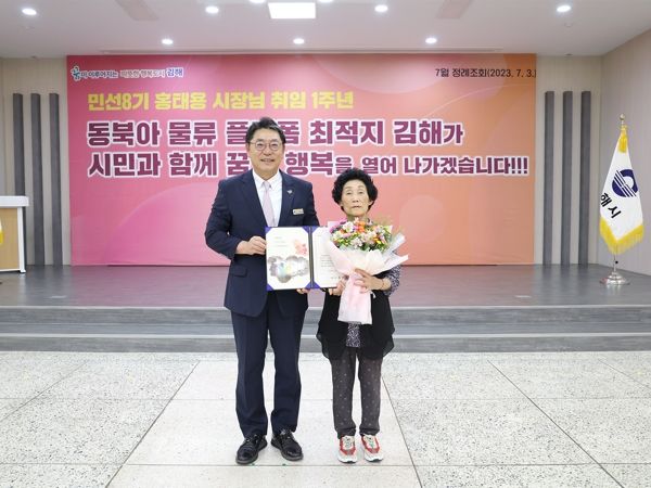 [제주교통복지신문 김강석 기자] 김해시는 3일 민선8기 1주년 기념식을 겸한 정례조회에서 구순연(73)씨에게 이달의 우수 자원봉사왕을 수여했다.